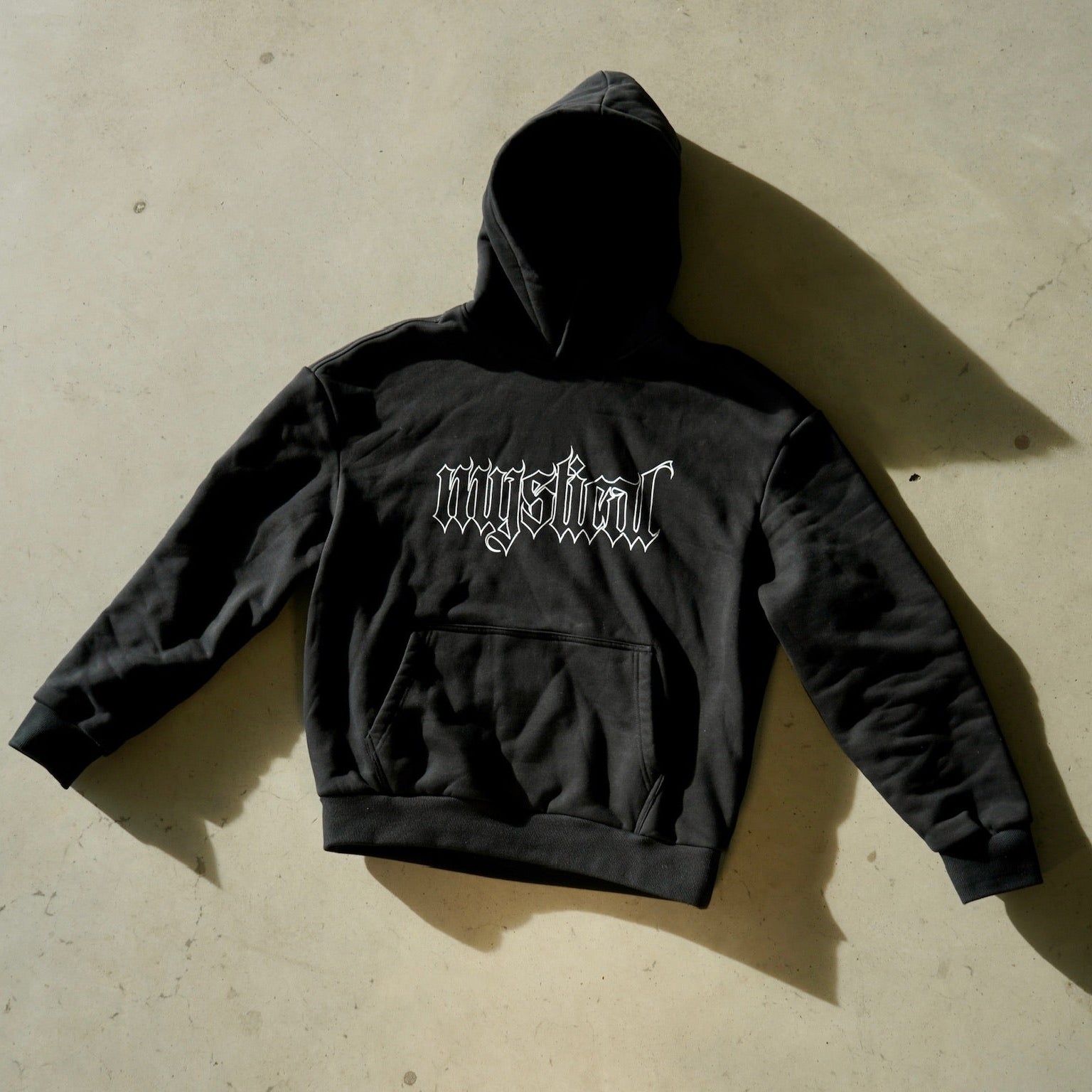 Elevate your everyday wardrobe with the Black Outline Hoodie, where clean design meets a darker spirit. Made from ultra-soft heavyweight cotton, this hoodie blends streetwear comfort with a street minimal aesthetic. The chest features a refined Old English "Mystical" print in a in white, creating a subtle yet striking visual statement.